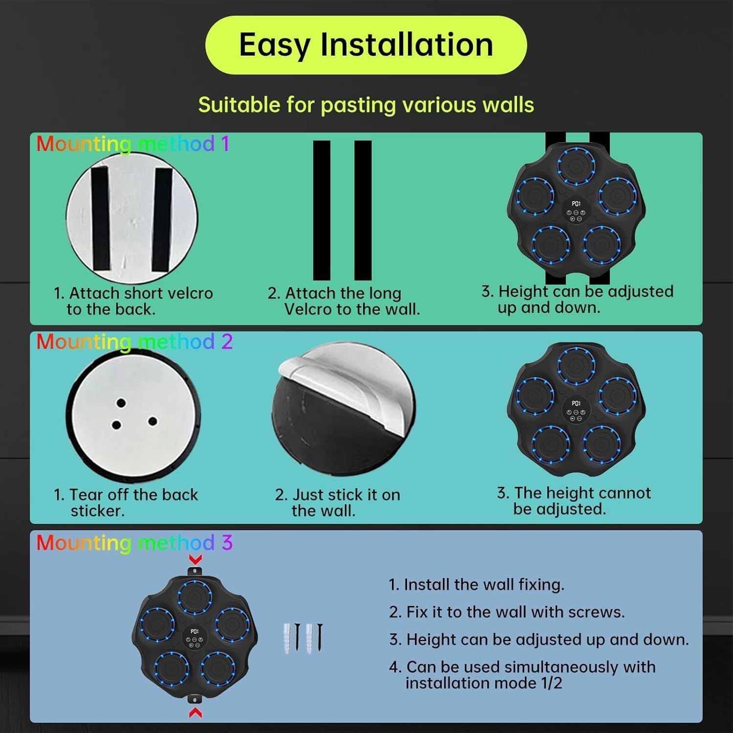 2025 New Upgraded Musical Boxing Machine] 5 New Upgraded Buttons: Our boxing machine uses 5 buttons to make operation easier; 3 Upgraded Installation Methods: Unlike other musical boxing machines, we have added a new drilling installation method, allowing you to train in more environments.